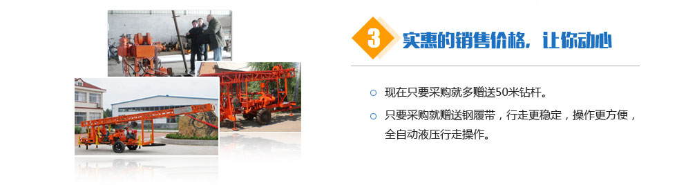 公司將繼續(xù)本著一如既往的努力,不斷發(fā)展。公司及時解決客戶生產過程中遇到的實際問題。創(chuàng)新文化:永不滿足,超越自我。以最完善的服務來滿足廣大用戶的需求。竭誠與您合作,共創(chuàng)美好明天。產品銷往全國各地,贏得用戶的一致好評,歡迎新老客戶光臨。水井鉆機公司真誠歡迎中外賓朋與本公司建立友誼。產品暢銷三十多個省市,深受廣大鉆井機械